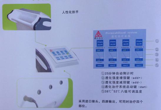 新版透化治療系統(tǒng),采用目前國際上比較超前的運動式交變螺旋磁場、定譜遠紅外、深入可變式電熱、定向?qū)ΨQ脈沖等比較先進的透化技術,結(jié)合中藥低溫萃取、納米孢子破壁處理及中醫(yī)中藥內(nèi)病外治的原理,可將中藥精華靶向的送到病灶部位,此療法無痛、快速、綠色安全,為目前國際上治療疾病的一種先進的方式。