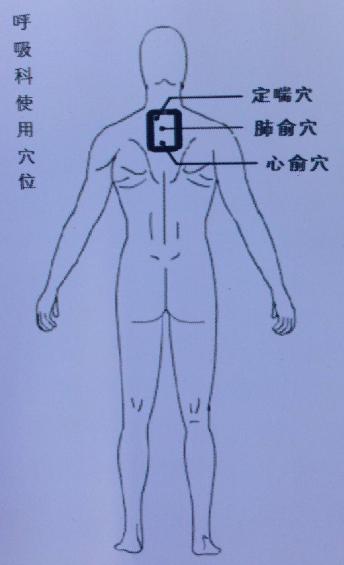 適應癥主要有:支氣管哮喘,慢性支氣管炎,肺氣腫,肺心病,慢性咳嗽。通過藥物對穴位刺激,可以有效的治療咳喘癥氣管、支氣管炎、肺炎等;能夠暢肺氣、除痰濁、改善癥狀,且無任何毒副作用。治療部位:背部肺腧穴配合膻中穴(遵醫(yī)囑)每天一到兩次,每次25分鐘,嚴重的同時做肺腧、膻中穴。7天一療程。(兒科、呼吸科配合溫肺止咳平喘類)