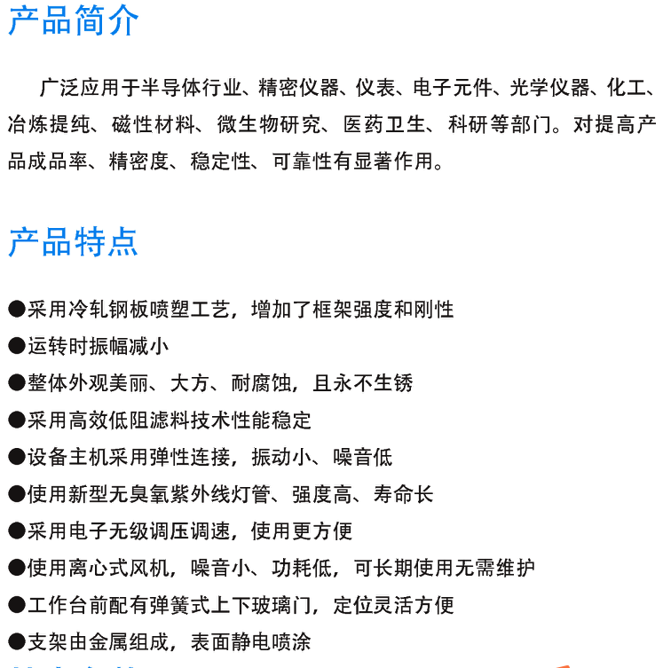 凈化工作臺是造就局部高潔凈度空氣環(huán)境的設(shè)備,氣流為水平、垂直層流兩種形式。它廣泛應用于半導體工業(yè),精密儀器、儀表、電子元件、光學儀器、化工、冶煉提純、磁性材料、微生物研究、醫(yī)藥衛(wèi)生、科研等部門。對提高產(chǎn)品成品率、精密度、穩(wěn)定性、可靠性有顯著作用。