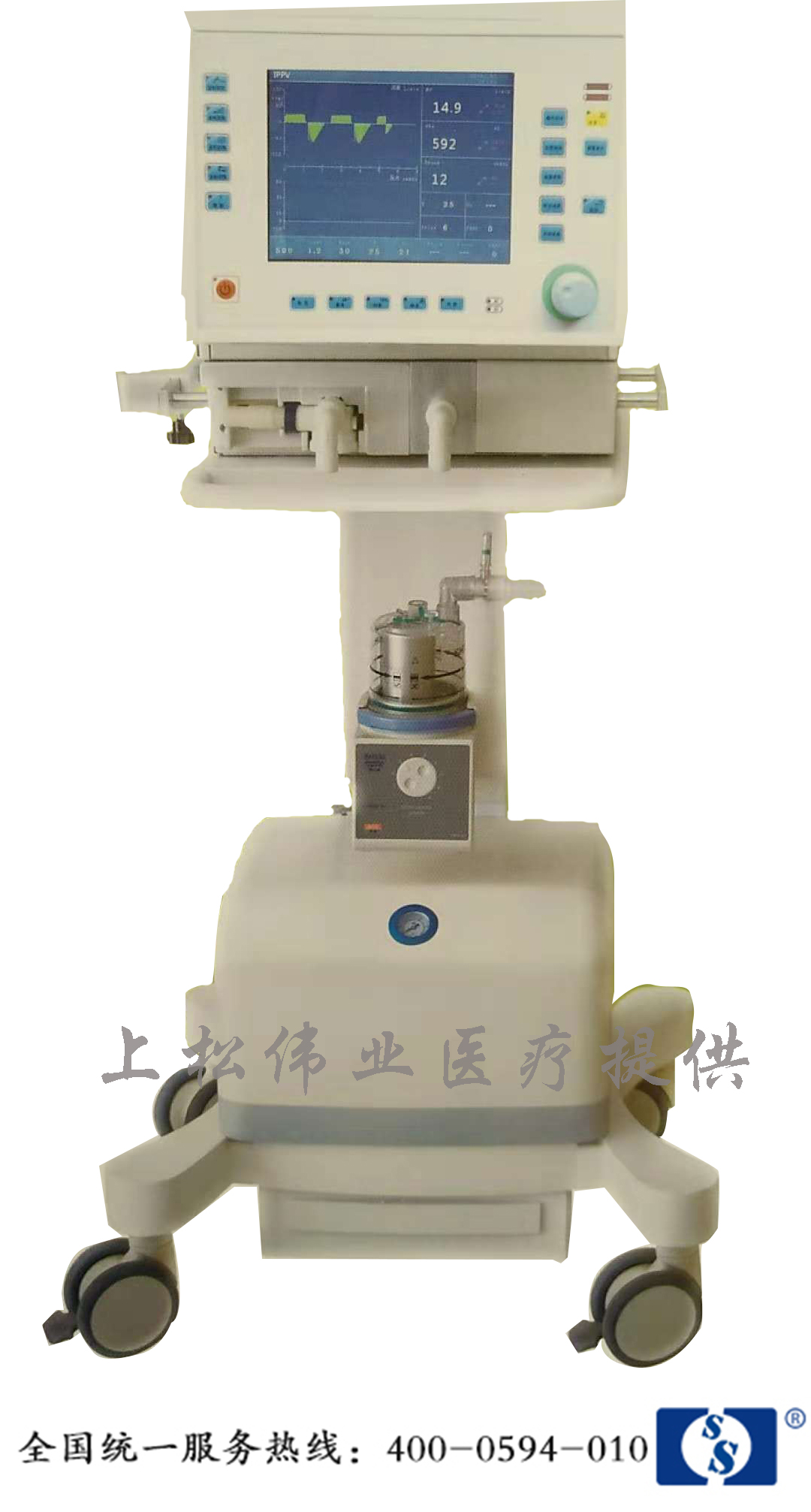 15英寸高清彩色TFT液晶觸摸顯示屏,可屏機分離監(jiān)測各種呼吸參數(shù),完善的三級聲光報警指示,報警音量可調(diào)。