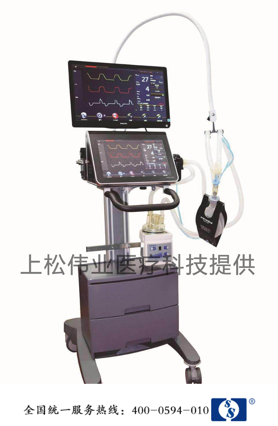 ●整機機身緊湊,便于呼吸機安裝在吊塔或急救車上,便攜使用設(shè)計