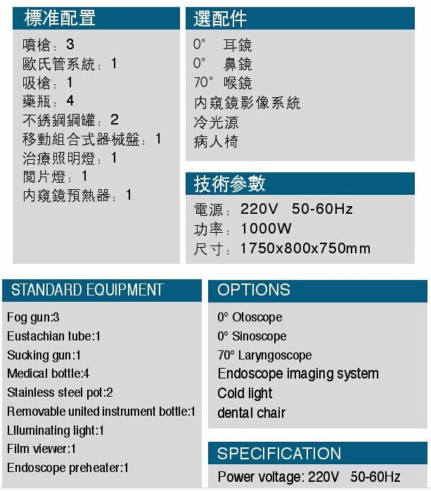 GEM-3000D型耳鼻喉綜合診療臺
