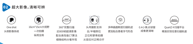 3:頭顱位攝影,采用高速CMOS探測(cè)器進(jìn)行掃描,最快4秒鐘拍攝一張頭顱片,于傳統(tǒng)的通過(guò)線性CCD水平掃描拍攝相比,大大縮短了拍攝時(shí)間,避免因?yàn)殚L(zhǎng)時(shí)間的曝光,病人運(yùn)動(dòng)而產(chǎn)生的偽影,從而拍攝出優(yōu)質(zhì)的頭顱位影像