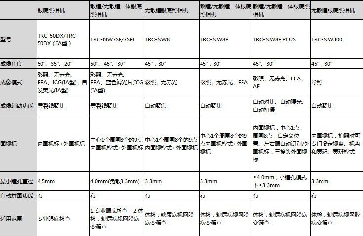 最小瞳孔拍攝直徑:3.5mm(距患者角膜距離)
