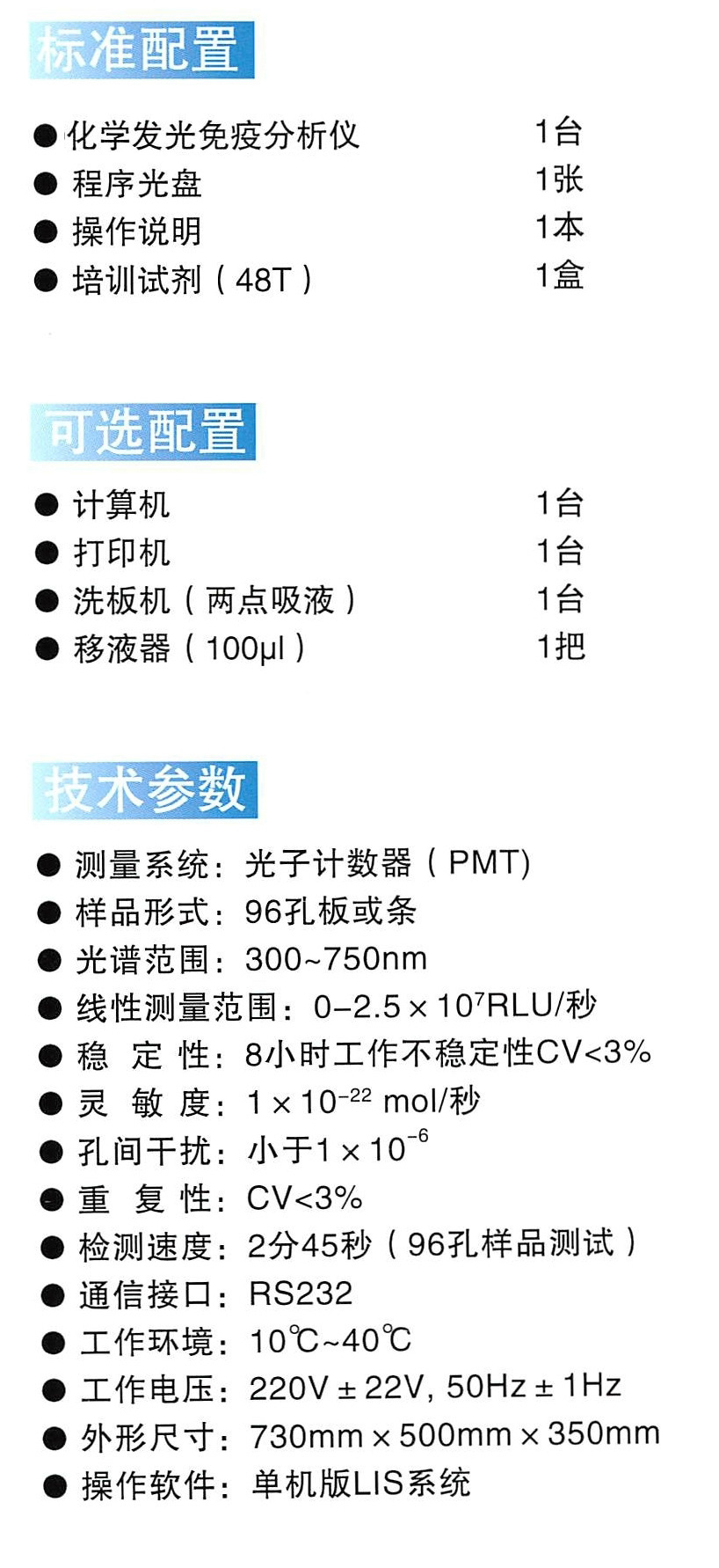 名稱:Maglia 60 化學(xué)發(fā)光免疫分析儀(國內(nèi)領(lǐng)先管式發(fā)光技術(shù),其它產(chǎn)品均板式發(fā)光技術(shù))