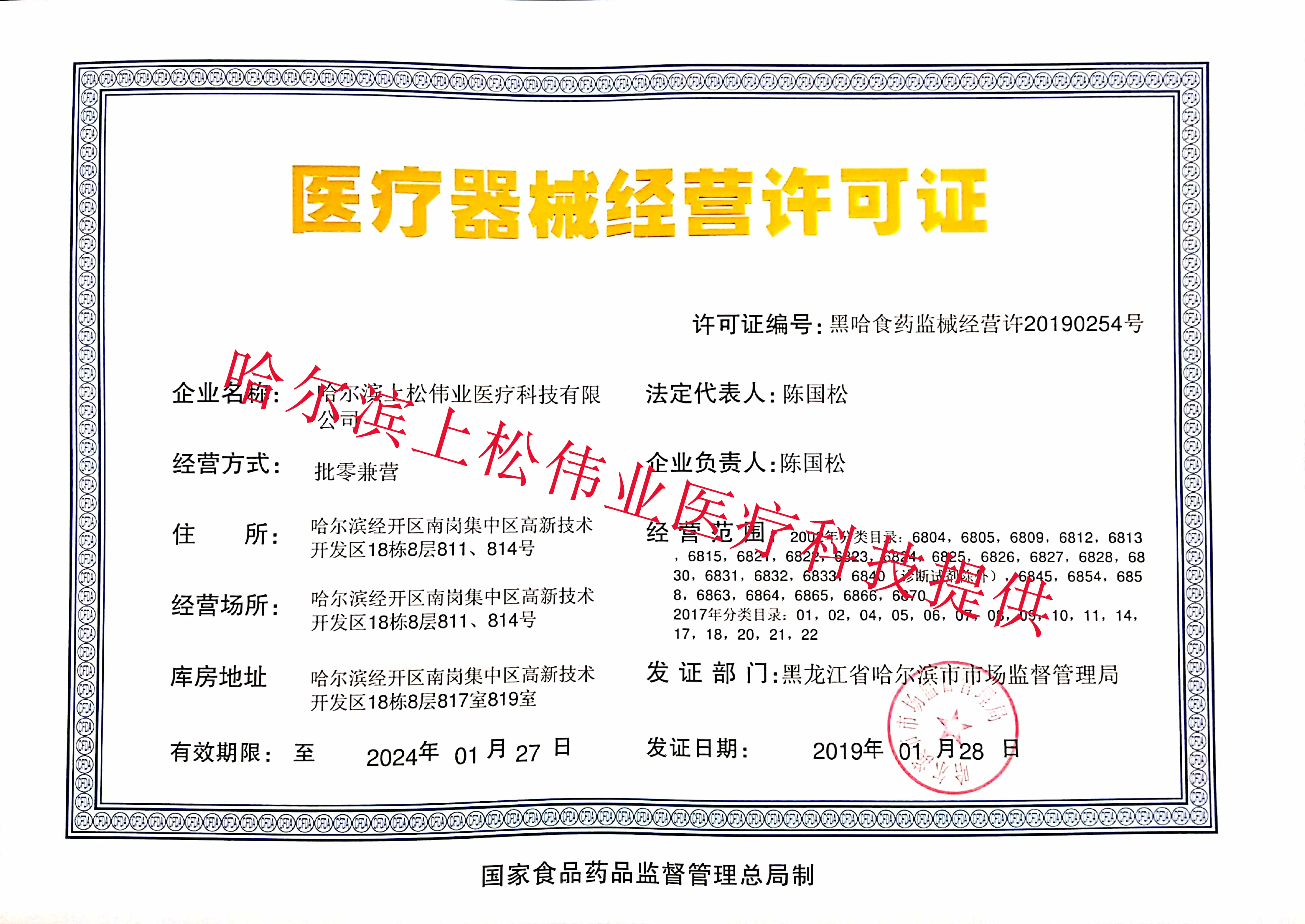 上松偉業(yè)醫(yī)療科技醫(yī)療器械經(jīng)營(yíng)許可證