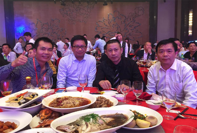 (右二)董事長陳國松先生 (左二)總經(jīng)理陳國洪先生與遼寧分會(huì)詹國章監(jiān)事長、蘇金琰執(zhí)行會(huì)長等人親切合影