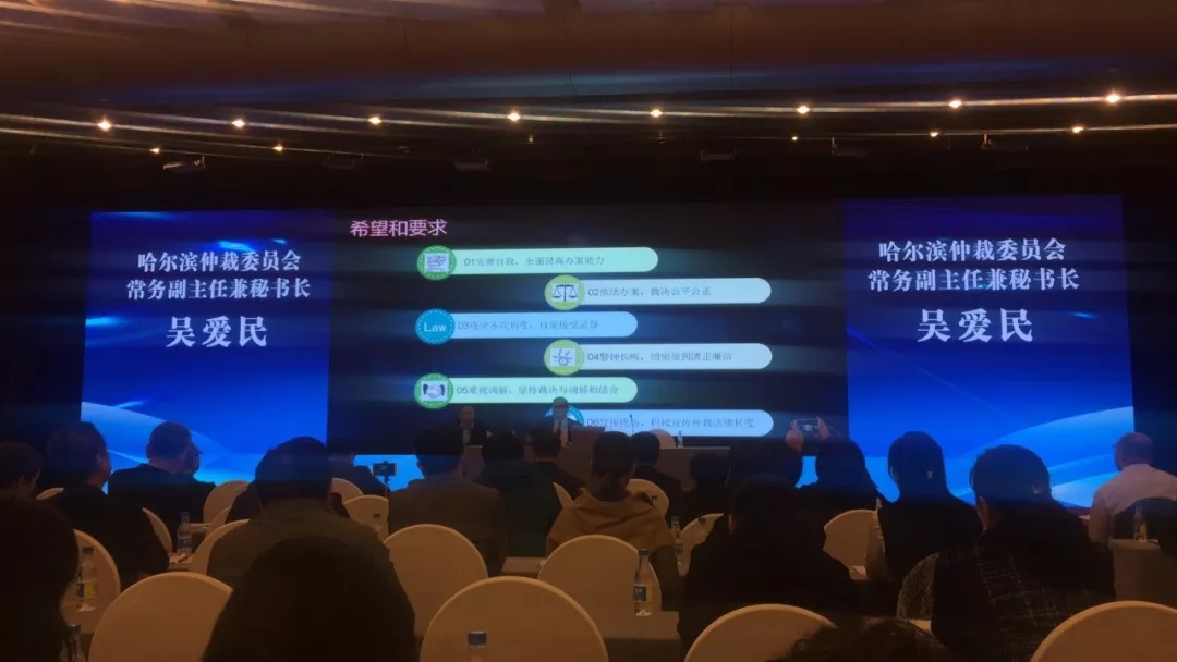 會議首先由哈仲常務(wù)副主任兼秘書長吳愛民同志簡要介紹了第五屆仲裁員的申報和選聘情況、第五屆委員會的工作目標以及第四屆仲裁員中存在問題,并對第五屆仲裁員及調(diào)解員提出了希望和要求。吳愛民副主任號召第五屆仲裁員及調(diào)解員在今后工作中能夠做到:一、完善自我,全面提高辦案能力;二、依法辦案,裁決公平公正;三、遵守各項制度,自覺接受監(jiān)督;四、警鐘長鳴,切實做到清正廉潔;五、重視調(diào)解,堅持裁決與調(diào)解相結(jié)合;六、發(fā)揮優(yōu)勢,積極宣傳仲裁法律制度。